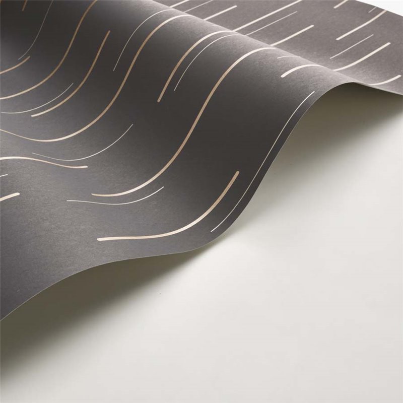 The wallpaper Casadeco Suspension Noir Fusain features a minimalist design with discontinuous iridescent stripes. SUSPENSION by Casadeco is a very modern wallpaper where the metallic stripes mimic summer rain. Available in 3 colors and very exclusive combinations.