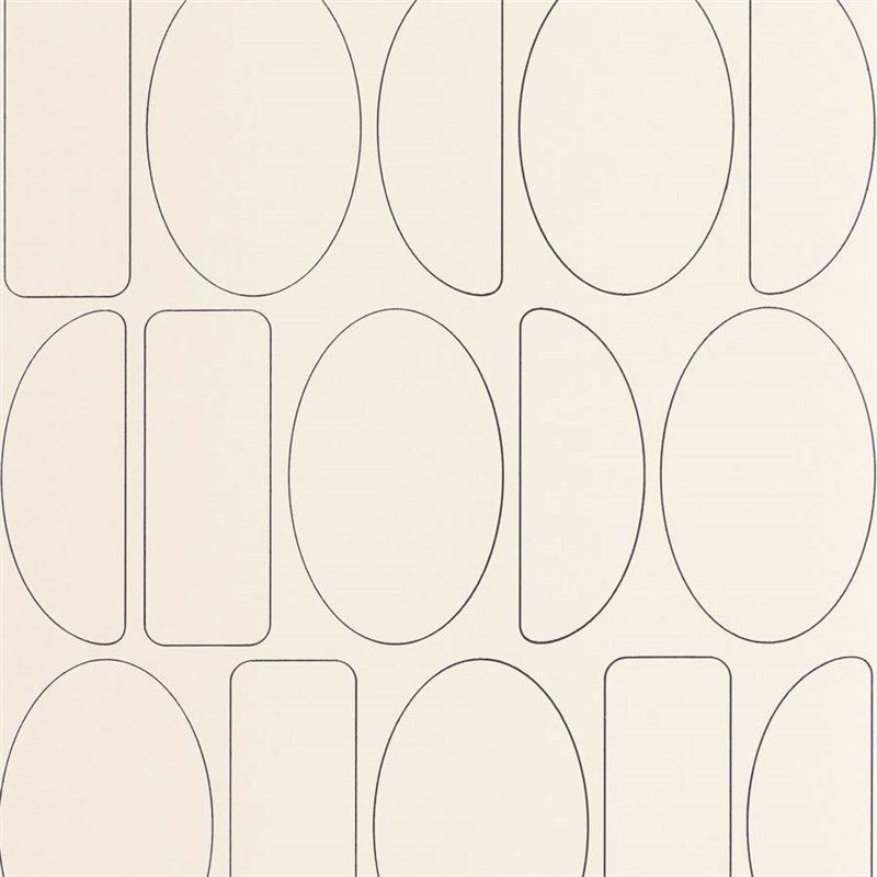 Papel pintado moderno con figuras geométricas ovaladas verde, aportando dinamismo visual a paredes de salones, estudios o recibidores.