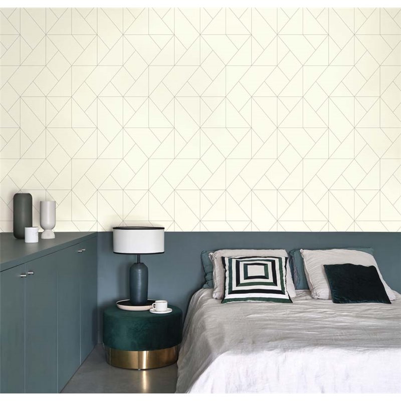Papel pintado geométrico con rombos descentrados beige, ideal para dar un aire creativo y expresivo a cualquier estancia.