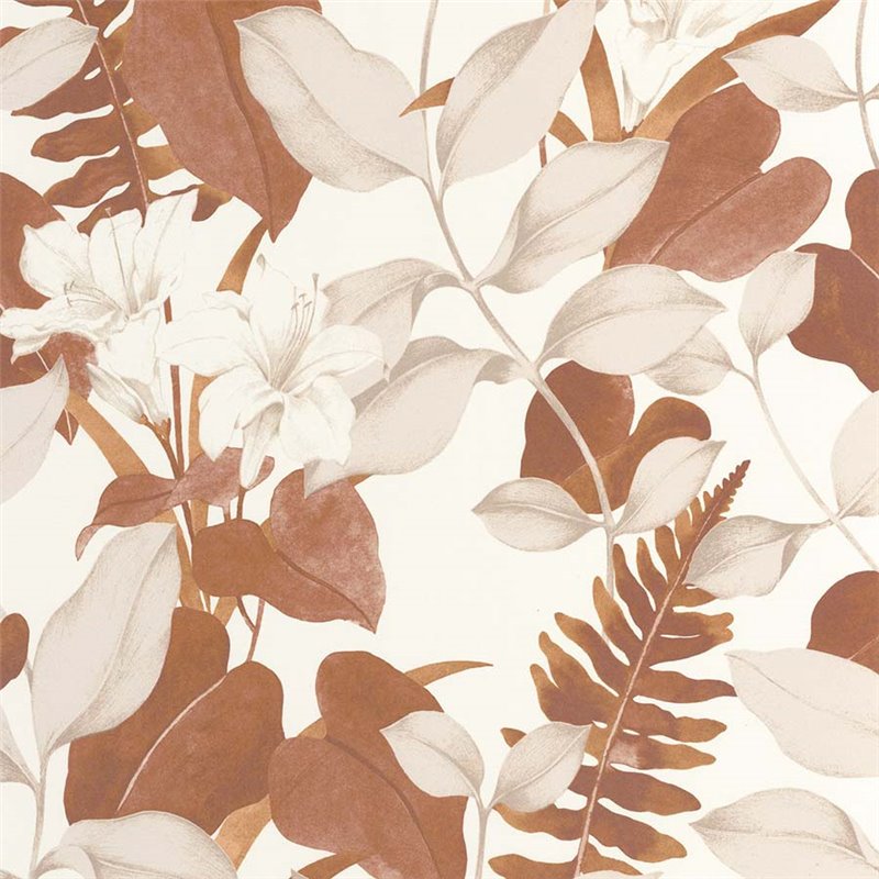 Papel pintado floral con lirios blanco y beige para dormitorio. Motivo floral suave para un ambiente cálido y tranquilo en tu dormitorio.