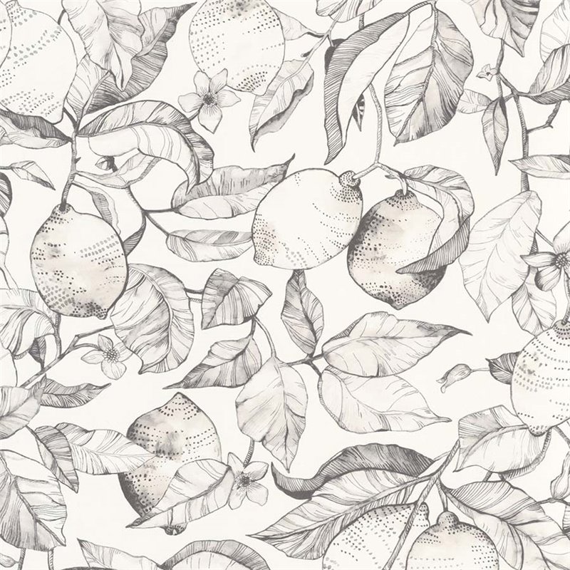 Papel pintado floral con limones ideal para cocina. Frutas frescas en un motivo alegre para cocinas luminosas y acogedoras.