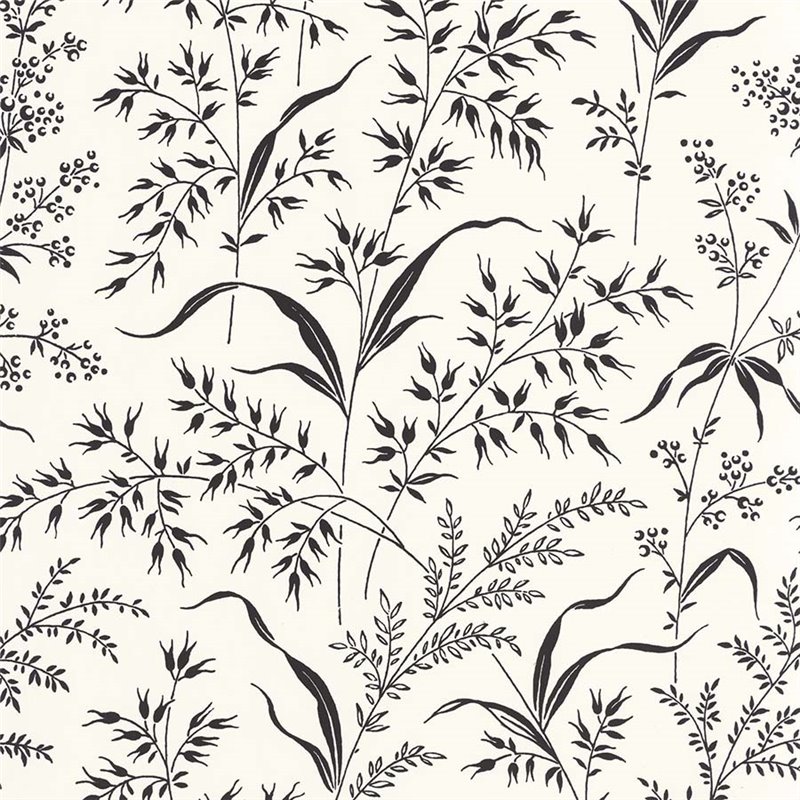 Papel pintado flores de campo silvestres negro. Flores oscuras para un salón moderno con contraste audaz.