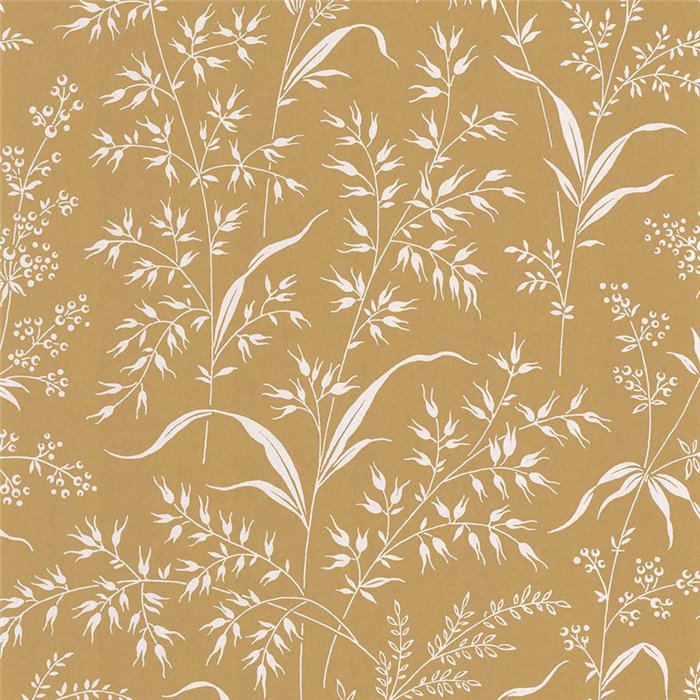 Papel pintado plantas silvestres blanco con como briza, espuela de caballero y timoteo. Motivo natural para un recibidor sereno.