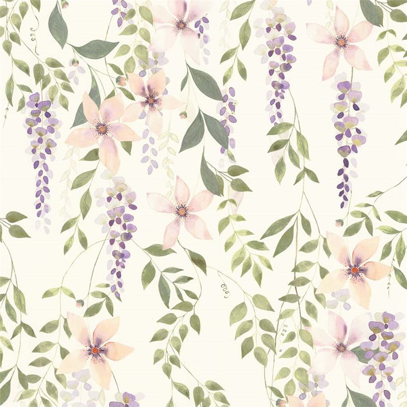 El papel pintado Casadeco Wisteria Violet / Vert Gazon invita con sus flores trepadoras y acrobáticas a un movimiento único para las paredes. El papel pintado Wisteria de Casadeco y sus glicinas parecen descolgarse desde la cúpula de una pérgola dándole a tus paredes una estética fresca y natural.