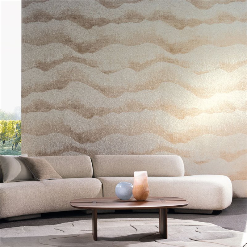 Inspirado en el parque de las Montañas Rocosas, el revestimiento de pared Casamance Jasper Sable de estilo contemporáneo tiene un diseño abstracto con una panorámica de nubes en el horizonte. JASPER de Casamance es un revestimiento de pared confeccionado principalmente con lana virgen y alpaca disponible en 2 tonos, el del amanecer y el atardecer.