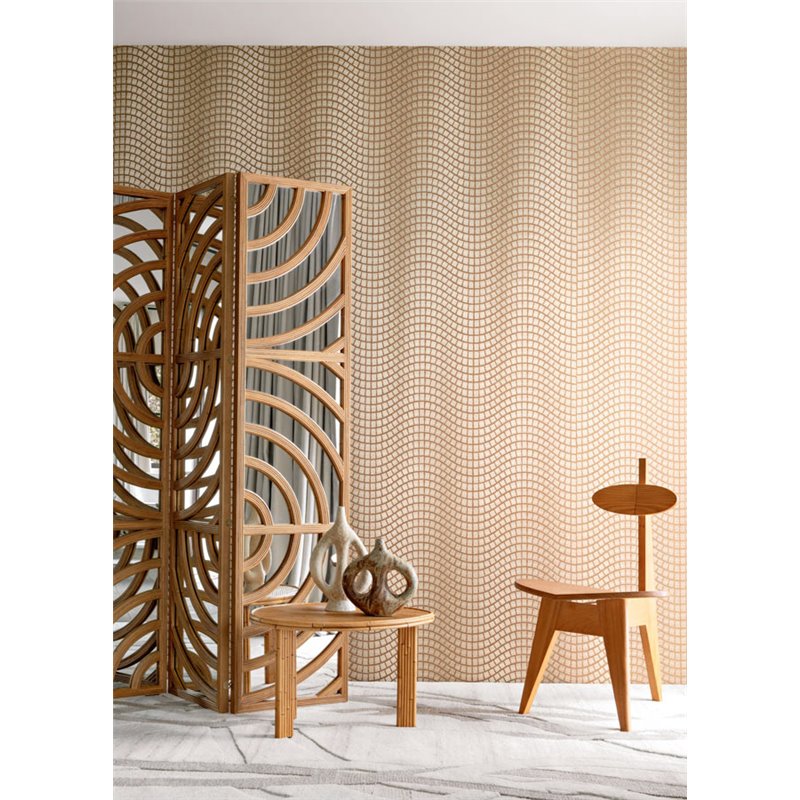 El revestimiento de pared Casamance Onsen Beige Naturel se compone de pequeños cuadros bordados sobre una base textil de sisal en forma de mosaico. ONSEN de Casamance está inspirado en las fuentes termales y baños naturales de Japón, decorados y pavimentados con pequeños azulejos. Disponible en dos versiones: un sisal marfil bordado en blanco y un sisal natural bordado en beige.