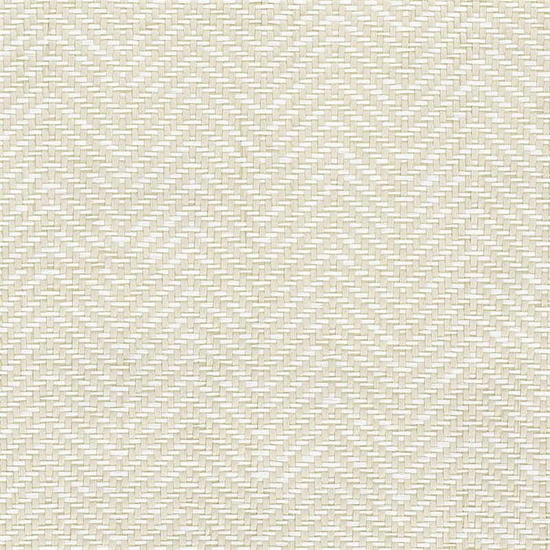 El revestimiento de pared Casamance Kasane Ivoire tiene un aspecto de fibras naturales imitando la textura de la rafia trenzada y en forma de espiga ó patrón de chevrón. KASANE de Casamance está disponible en 8 variaciones de color y los galones de rafia plisada parecen haber sido teñidos antes de ser tejidos.