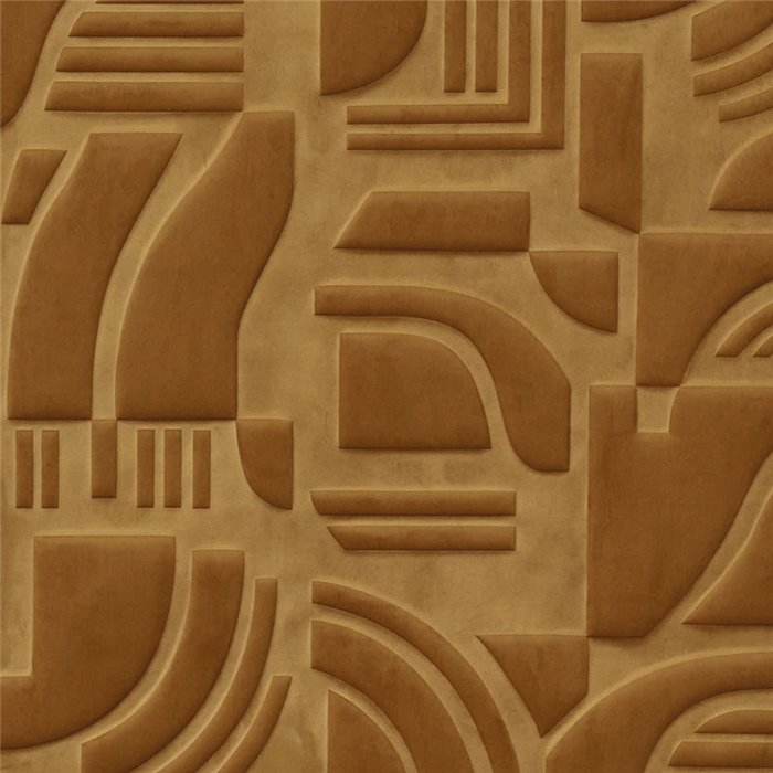 Revestimiento de pared diseño Art Déco 3D sobre terciopelo beige / marrón, Casamance Arcane Beige. Precio por metro lineal, ancho de 130 cm.