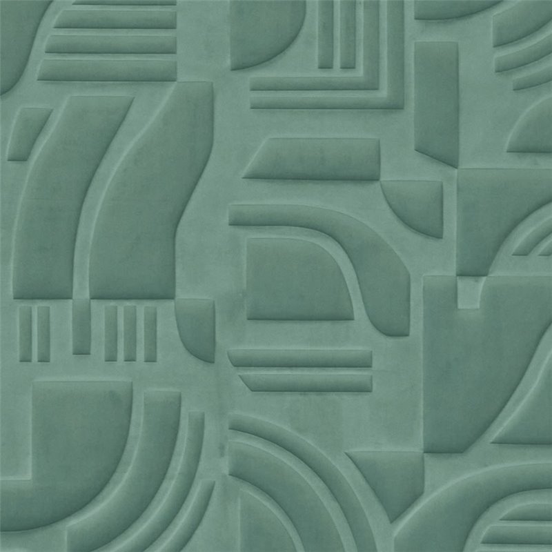 Revestimiento de pared aislante acústico con formas geométricas estilo moderno verde celadón, Casamance Arcane Céladon. Precio por metro lineal, ancho de 130 cm.