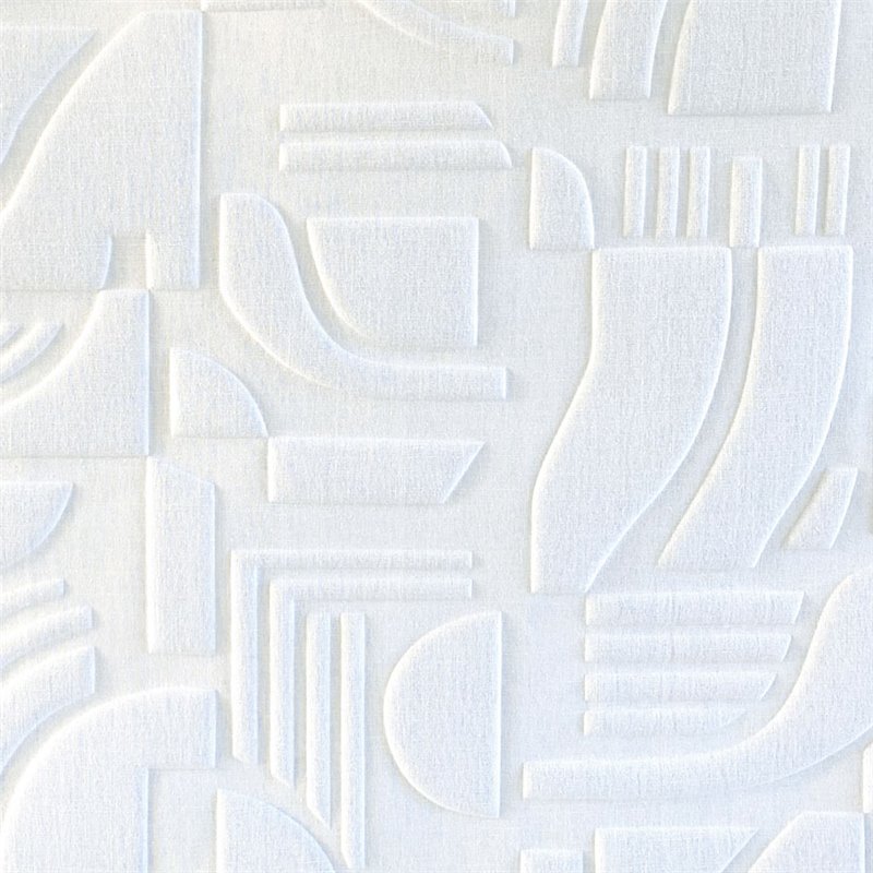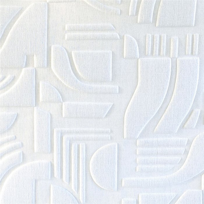Revestimiento de pared aislante acústico moderno con formas geométricas blanco, Casamance Arcane Linsolite Blanc. Precio por metro lineal, ancho de 130 cm.