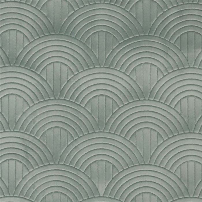 Revestimiento de pared aislante acústico de terciopelo, diseño 3D Art Deco beige empolvado, Casamance Arcane Volutis Beige Poudré. Precio por metro lineal, ancho de 130 cm.