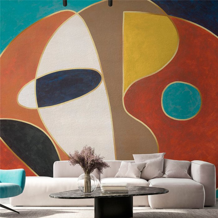 Mural pared personalizado contemporáneo formas curvas abstractas