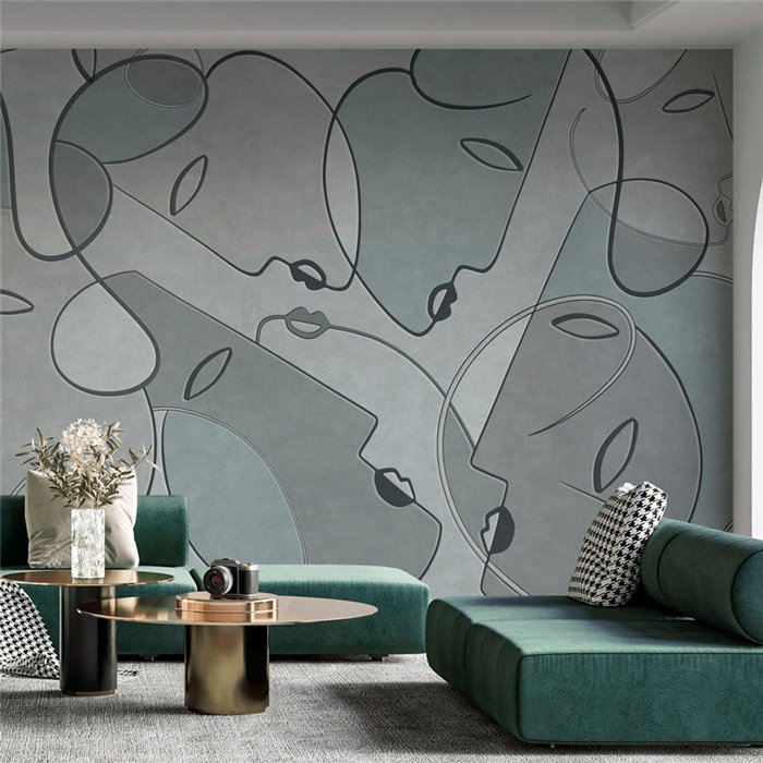 Mural personalizado Contemporáneo, Rostros Abstractos en Tonos Verdes y Azulados, Affreschi & Affreschi Innerline IL103, diseñado por Maria Dalli. Precio para la medida: 400 x 280 cm.