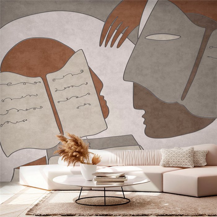 Mural personalizado Cubista, Rostros Abstractos en Tonos Terracota, Affreschi & Affreschi Innerline IL105, diseñado por Maria Dalli. Precio para la medida: 400 x 280 cm.