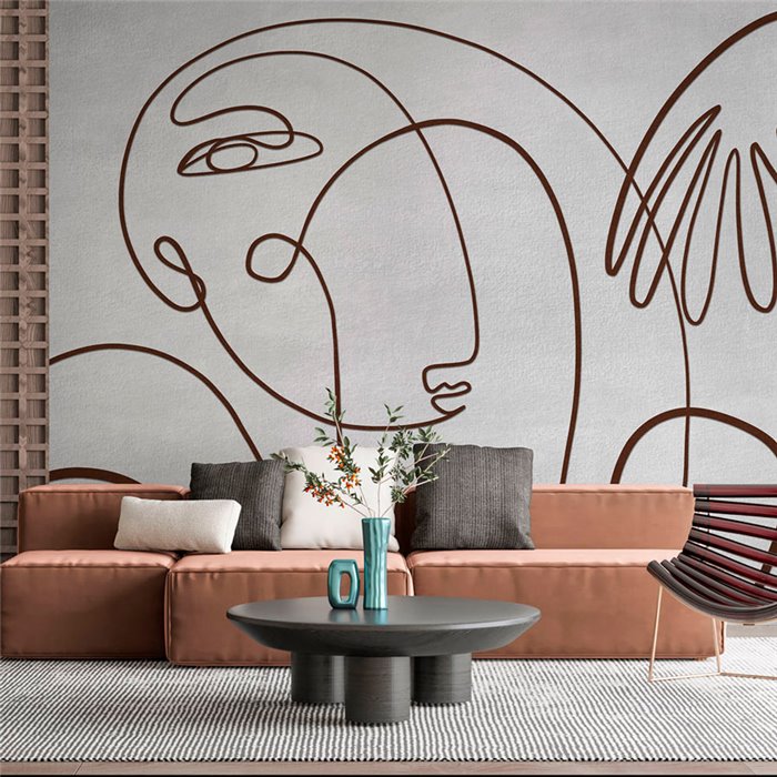 Mural personalizado Cubista, Rostros Abstractos en Tonos Terracota, Affreschi & Affreschi Innerline IL105, diseñado por Maria Dalli. Precio para la medida: 400 x 280 cm.
