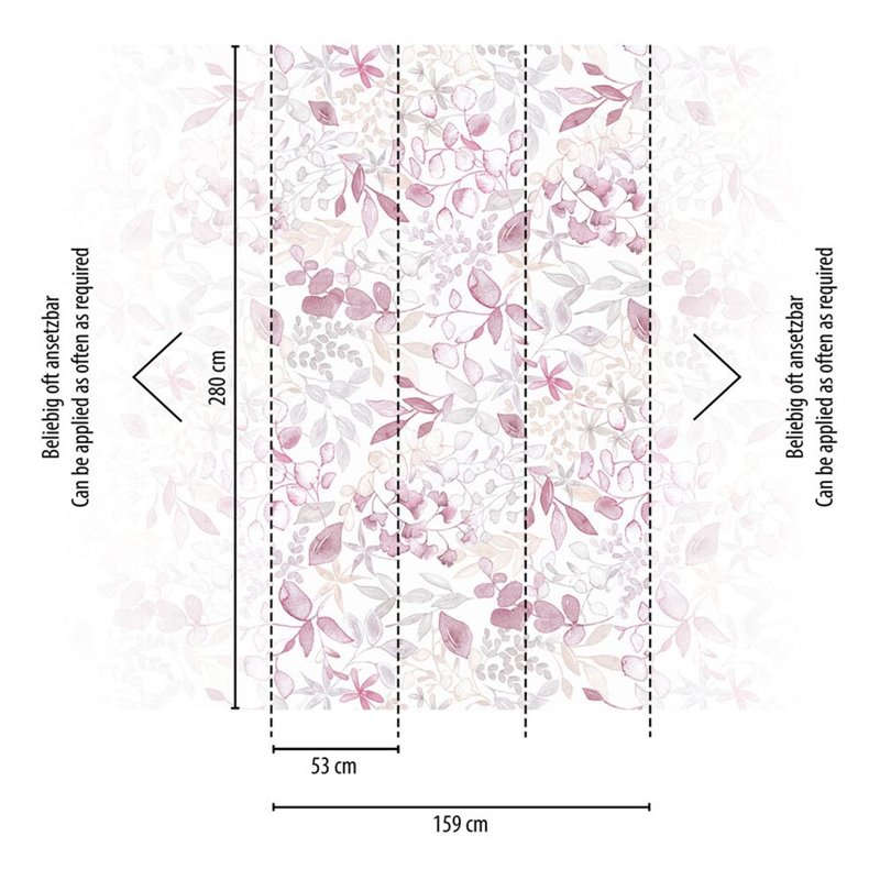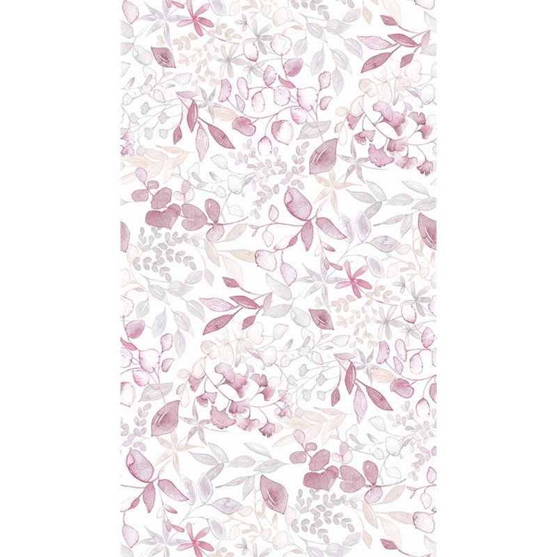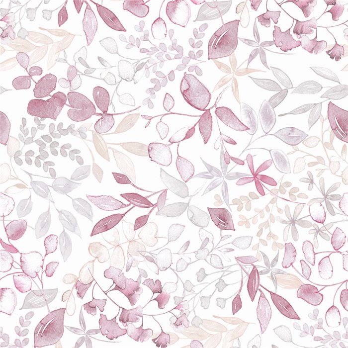 El Papel pintado Watercolor 2027396922 de Papeldecor de color gris y rosa, presenta un patrón de hojas dibujadas con efecto acuarela que enamora. Su textura efecto lienzo le da un toque extra de originalidad.