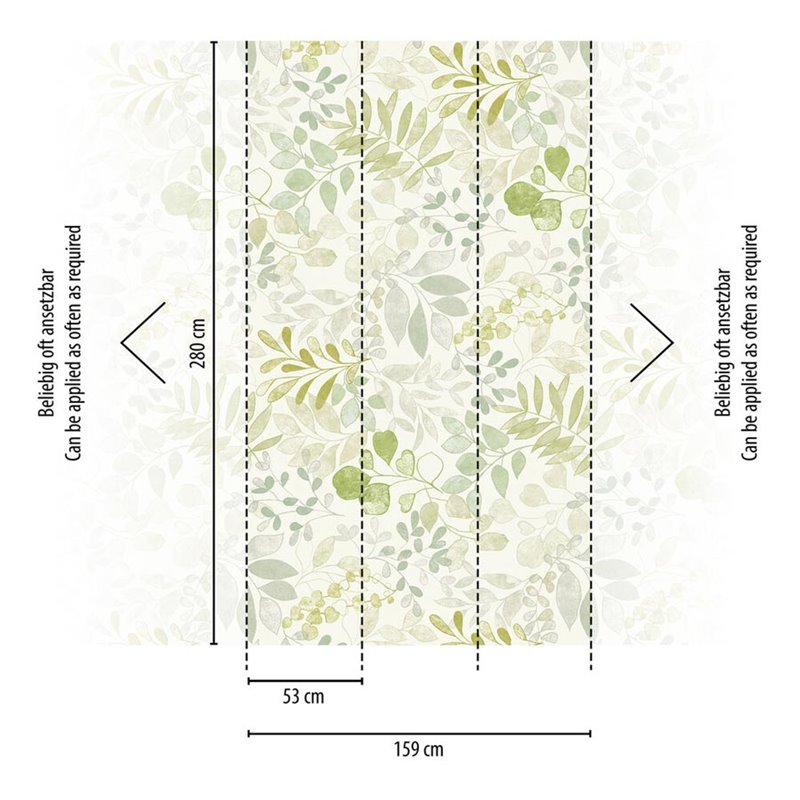 Papel pintado Watercolor 2027396921 de Papeldecor, una explosión de color en tonos verdes y azules. Su patrón de hojas dibujadas con efecto acuarela aporta un toque artístico a cualquier espacio.