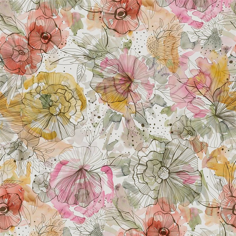 Papel pintado Watercolor 2027396942 de Papeldecor, con un atractivo color beige y naranja que ilumina cualquier espacio. Su patrón de flores grandes de acuarela en tonos pastel aporta un toque artístico y delicado.