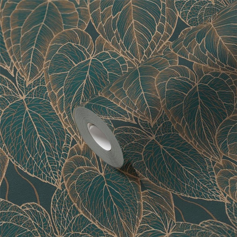 El Papel pintado Vortex 2027781282 es una opción elegante y moderna para cualquier espacio. Su estilo floral moderno se destaca por un patrón de hojas grandes con foliares metálicos, que aporta un toque sofisticado y contemporáneo. El color marrón y negro acentúa su diseño, creando un ambiente cálido y acogedor.