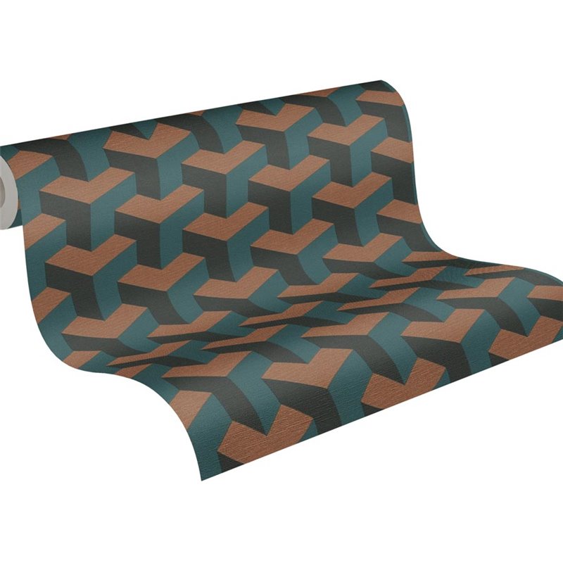 El Papel pintado Vortex 2027781502 es una opción moderna y retro a la vez, perfecta para darle un toque único a tus espacios. Su patrón geométrico 3D efecto metalizado aporta una sensación de profundidad y movimiento, mientras que su combinación de colores azul y verde aporta frescura y tranquilidad. Ideal para quienes buscan estilo y originalidad en su decoración.