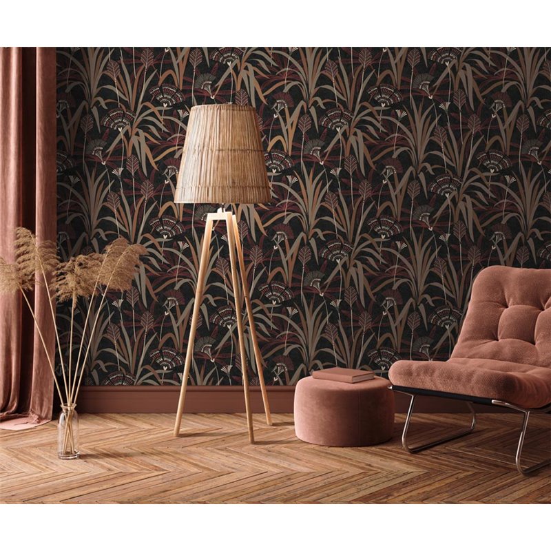 Papel pintado botánico estilo Art Deco negro