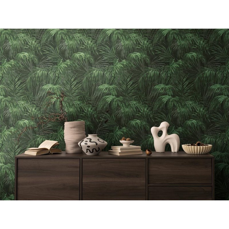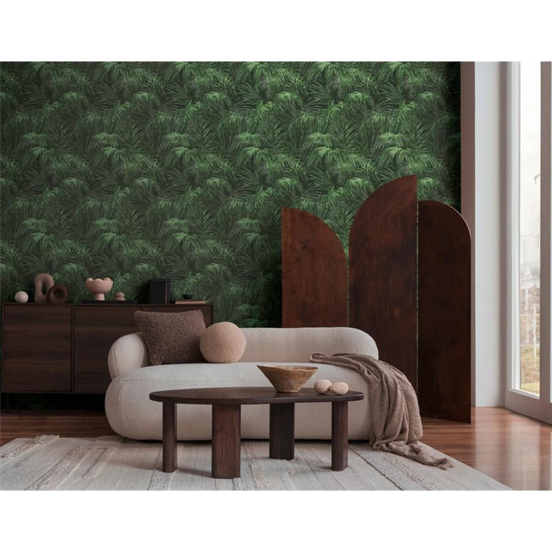 Descubre el Papel pintado Eclipse, una opción perfecta para darle un toque fresco y moderno a tus espacios. Su estampado tropical de hojas de palma, en tonos crema y verde, aporta un estilo Urban Jungle único. Ideal para quienes buscan un diseño audaz y contemporáneo.