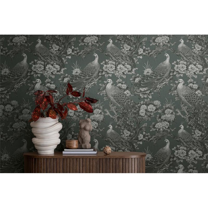 Descubre el Papel pintado Eclipse, una opción elegante y sofisticada para tu hogar. Su estilo floral se destaca por una ilustración floral elegante con pavos reales, que aporta un toque de naturaleza y distinción a cualquier espacio. Los colores gris y verde se combinan de manera armoniosa, creando un ambiente tranquilo y relajante.