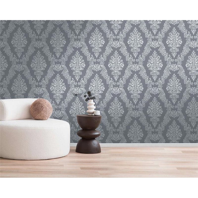 Papeldecor|Papel pintado elegante estilo damasco gris|Damasco