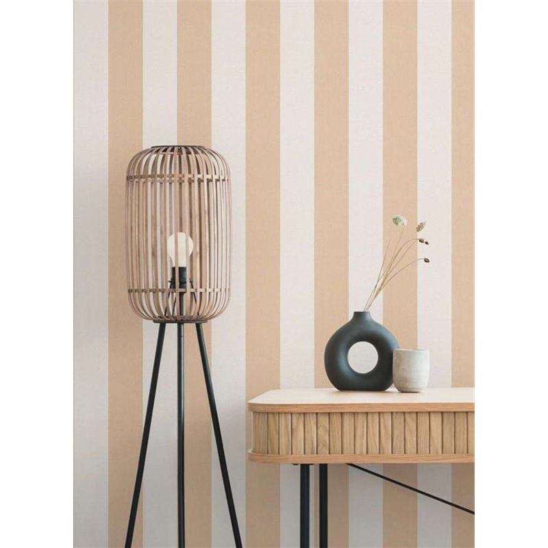 El Papel pintado Essence 2026397942 es un producto de alta calidad que aportará un toque de elegancia a cualquier espacio. Su patrón de rayas anchas y su estilo efecto textil le dan un aspecto sofisticado y moderno. El color crema y naranja aporta calidez y luminosidad, creando un ambiente acogedor y agradable.