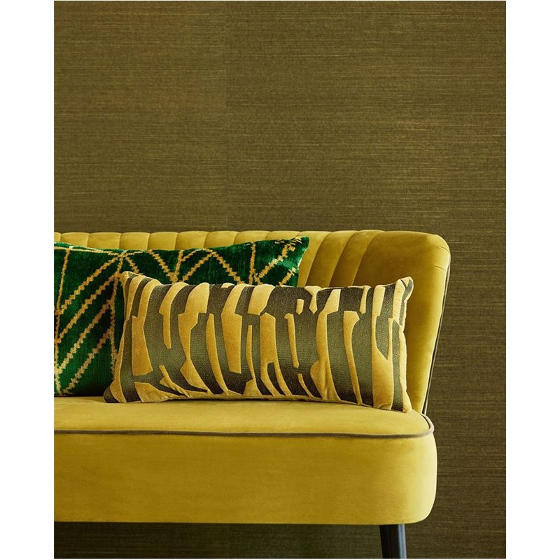 Revestimiento pared rafia tejida tintada verde caqui rústico