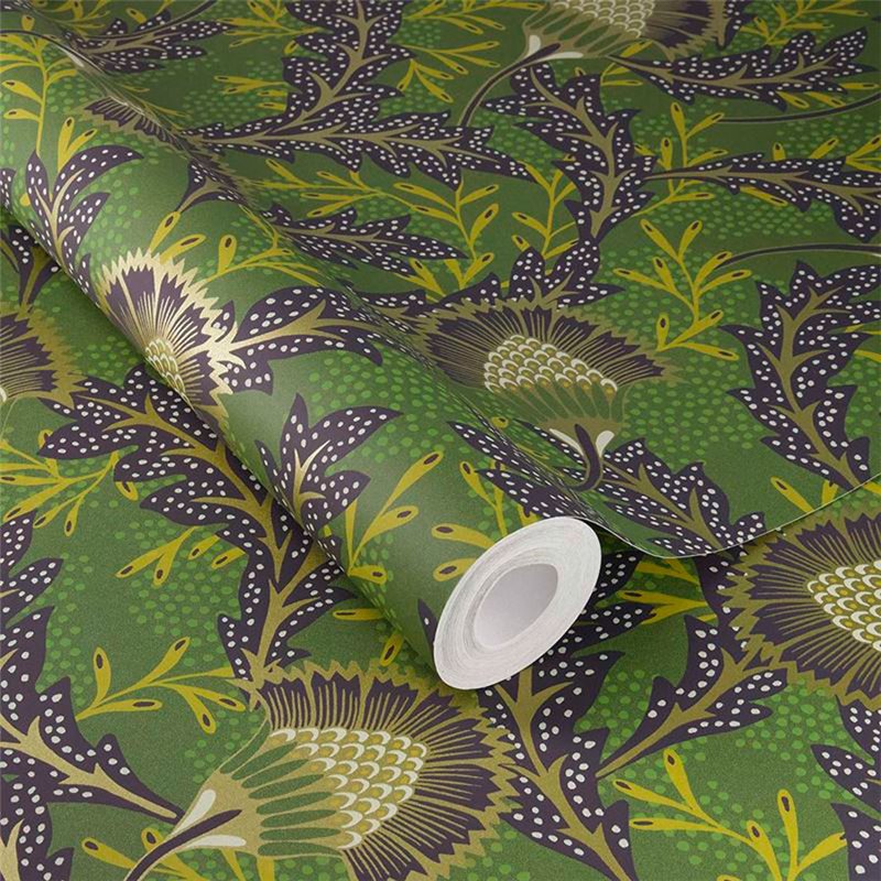 Papel pintado floral verde pastel boho moderno de Eijffinger, colección Solange. Medidas: 52 cm x 10 m. Papel de pared tejido no tejido y lavable.