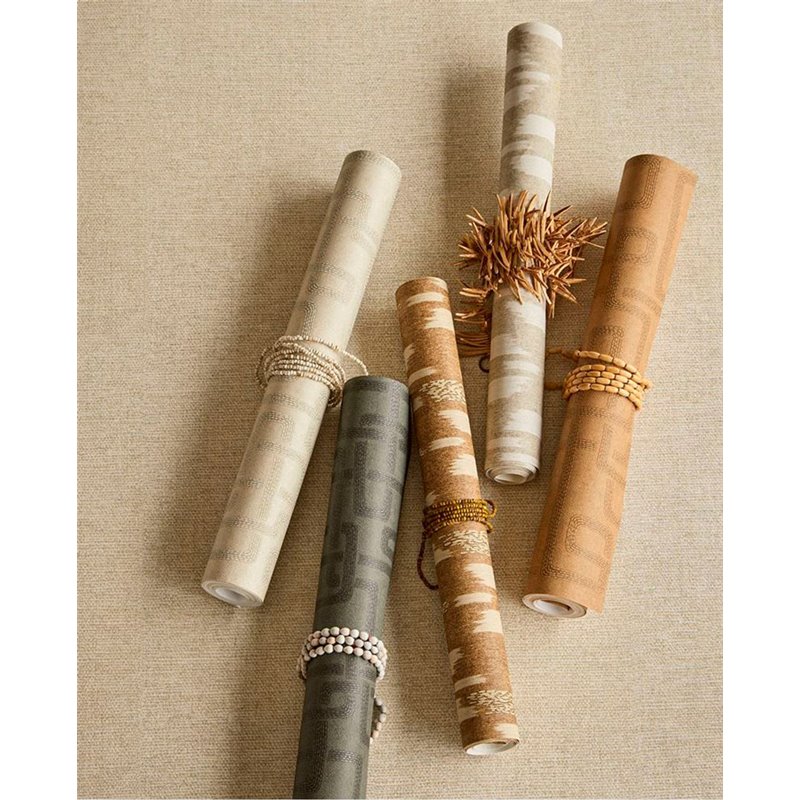 Papel pintado ikat marrón claro étnico moderno de Eijffinger, colección Solange. Medidas: 52 cm x 10 m. Papel de pared tejido no tejido y lavable.