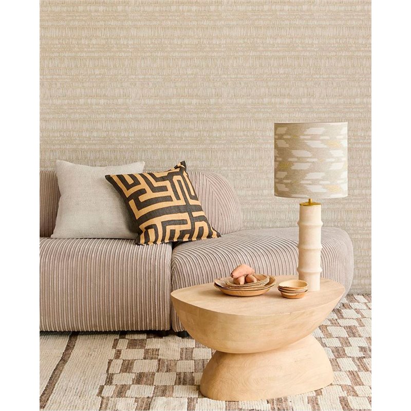 Papel pintado rafia batik beige étnico moderno de Eijffinger, colección Solange. Medidas: 52 cm x 10 m. Papel de pared tejido no tejido y lavable.
