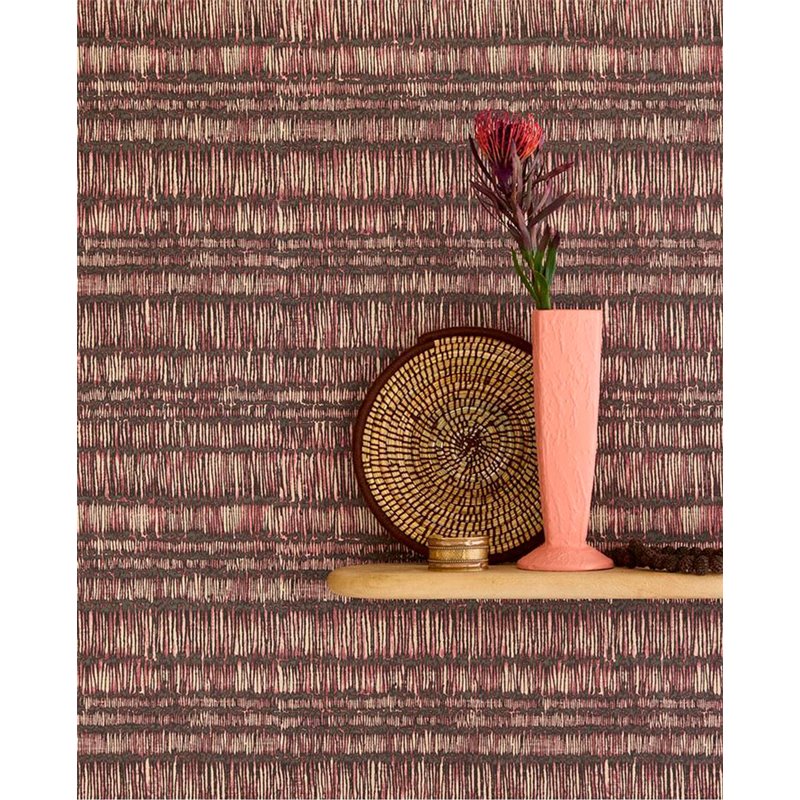 Papel pintado rafia batik rojo étnico moderno de Eijffinger, colección Solange. Medidas: 52 cm x 10 m. Papel de pared tejido no tejido y lavable.