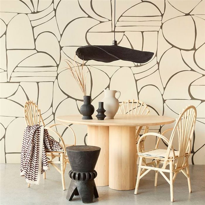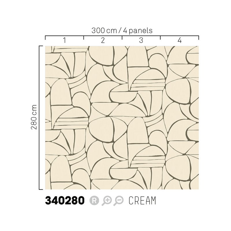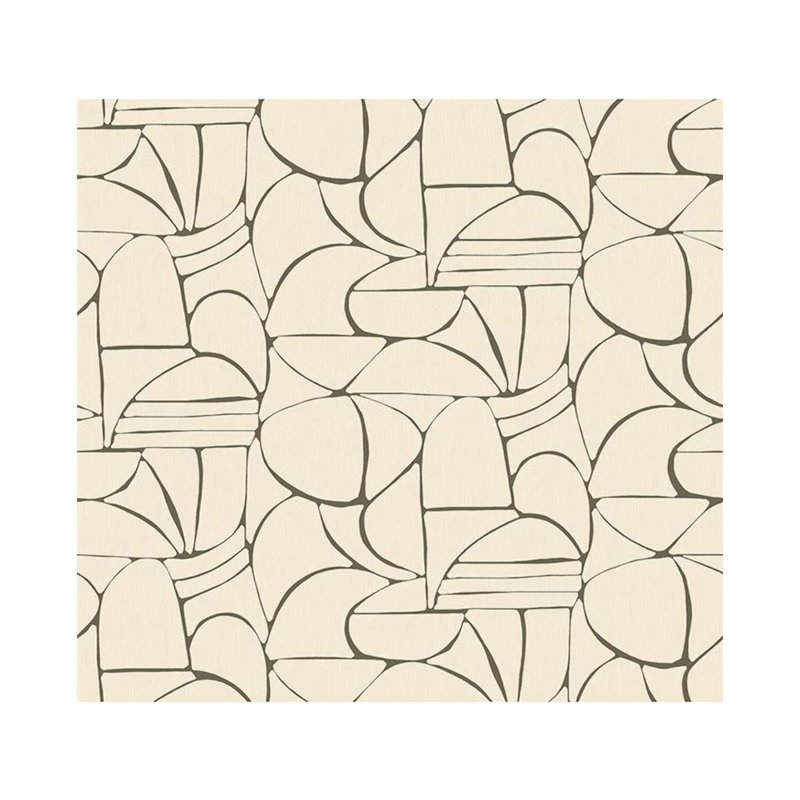 Mural de pared diseño abstracto y moderno con un patrón geométrico en tonos beige y dorado, Eijffinfer Solange. Medidas: 300 x 280 cm