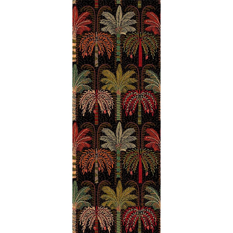Mural de pared patrón repetitivo de palmeras estilizadas en varios tonos verdes de Eijffinfer, colección Solange. Medidas: 106 x 280 cm
