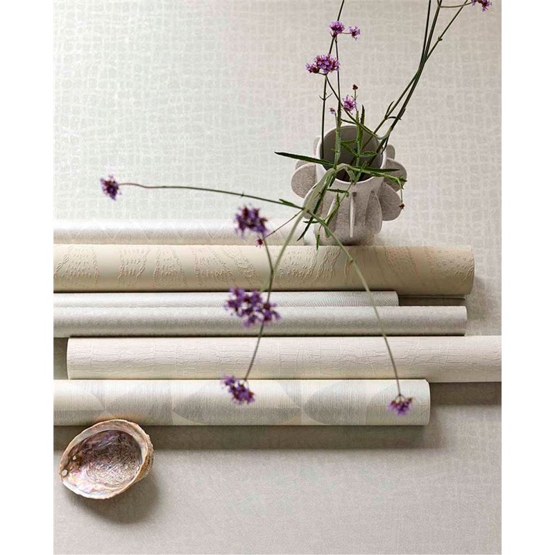 Papel pintado formas texturizadas gris plata geométrico de Eijffinger, colección Sensory. Medidas: 70 cm x 10 m. Papel de pared tejido no tejido y lavable.