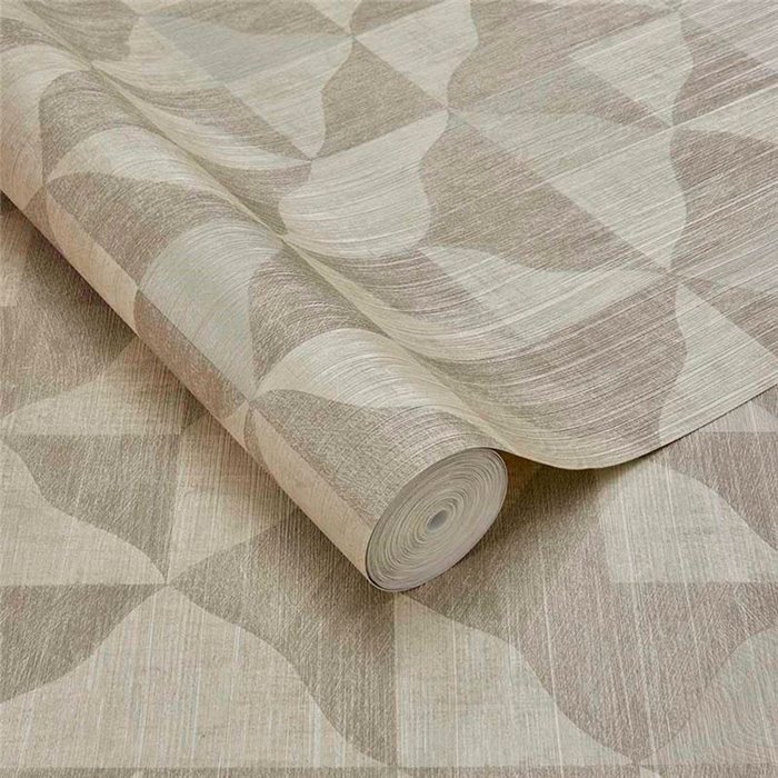Papel pintado formas texturizadas beige taupe geométrico de Eijffinger, colección Sensory. Medidas: 70 cm x 10 m. Papel de pared tejido no tejido y lavable.
