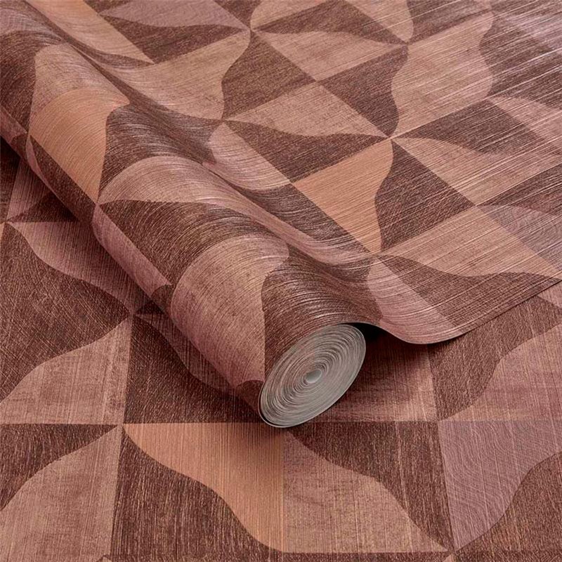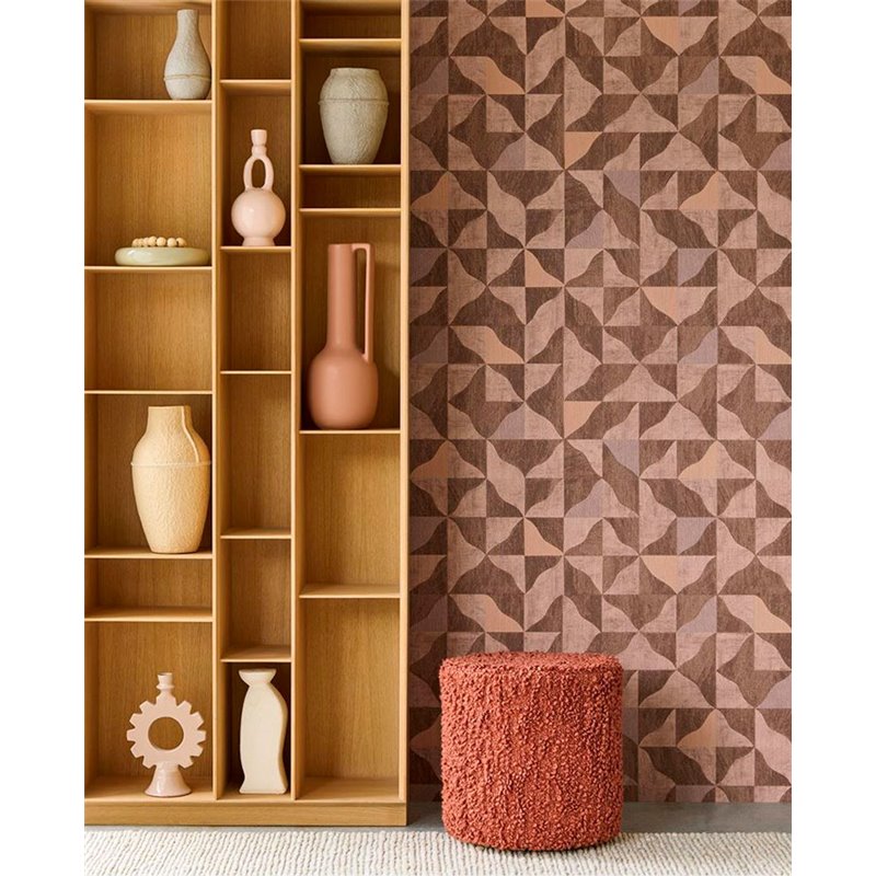 Papel pintado formas texturizadas marrón étnico geométrico de Eijffinger, colección Sensory. Medidas: 70 cm x 10 m. Papel de pared tejido no tejido y lavable.