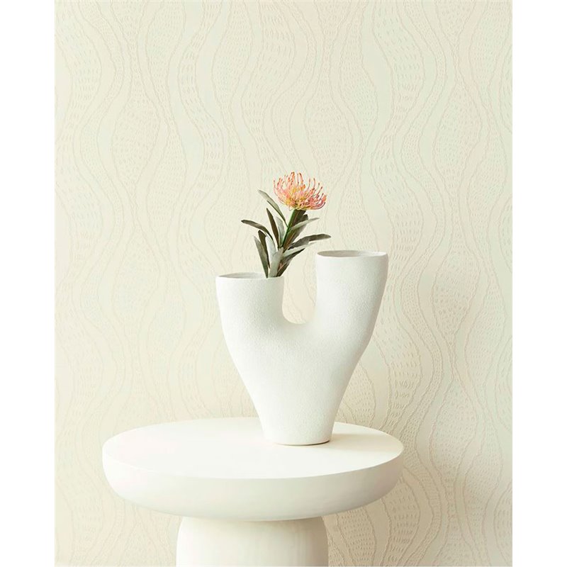Papel pintado ondas en relieve blanco crema escandinavo de Eijffinger, colección Sensory. Medidas: 68 cm x 10 m. Papel de pared tejido no tejido y lavable.