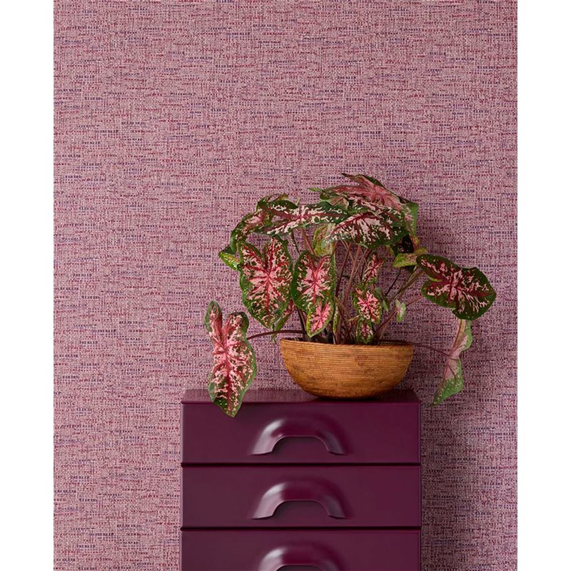 Papel pintado sisal efecto tejido morado lila estilo moderno de Eijffinger, colección Groovy. Medidas: 70 cm x 10 m. Papel de pared tejido no tejido y lavable.