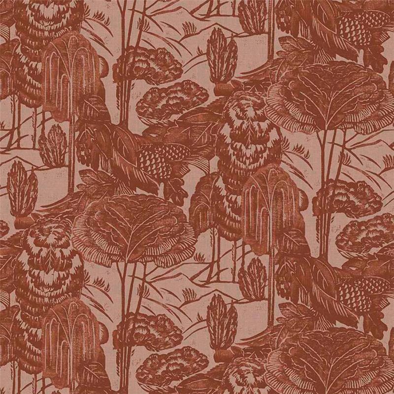 Papel pintado toile de jouy lino rojo estilo étnico de Eijffinger, colección Groovy. Medidas: 69 cm x 10 m. Papel de pared tejido no tejido y lavable.