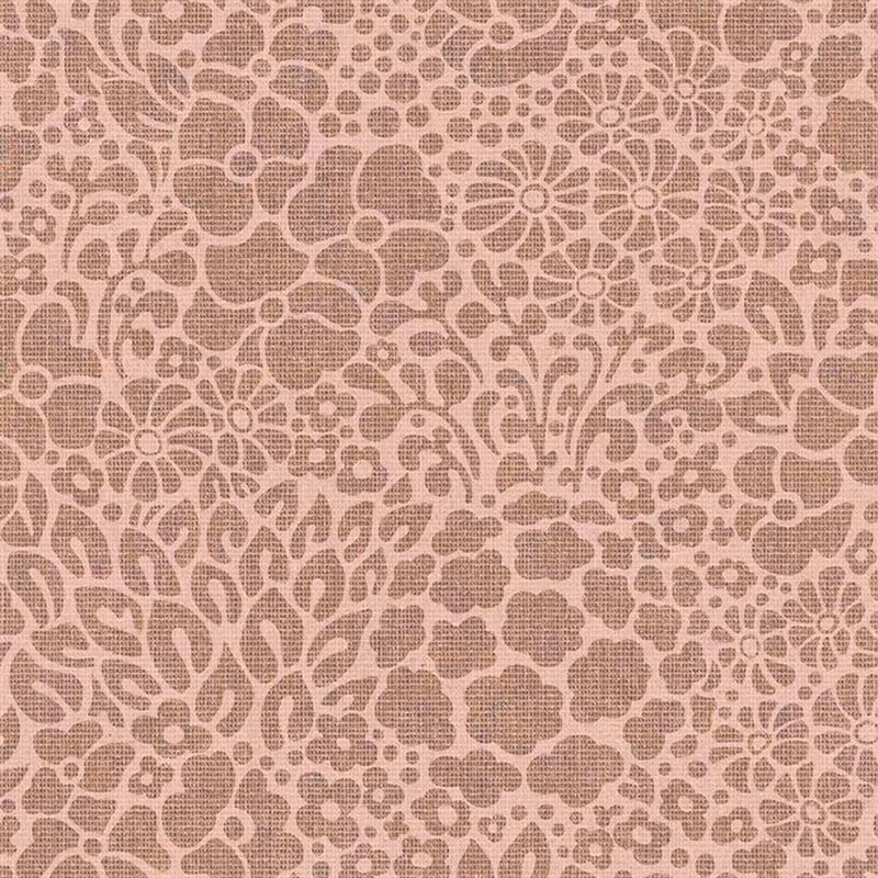 Papel pintado floral arpillería marrón rosa nude