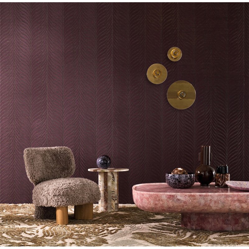 Revestimiento pared bordado botánico sisal berenjena contemporáneo