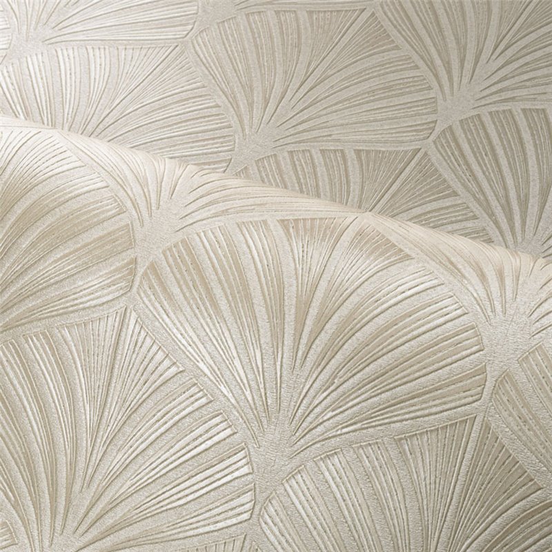 Papel pintado de lujo hojas de palma beige alta gama de Casamance, colección Magnitude - Textures. Calidad vinílico lavable, medidas: 1 x 10 m.