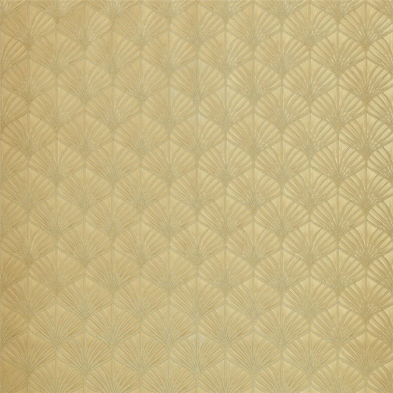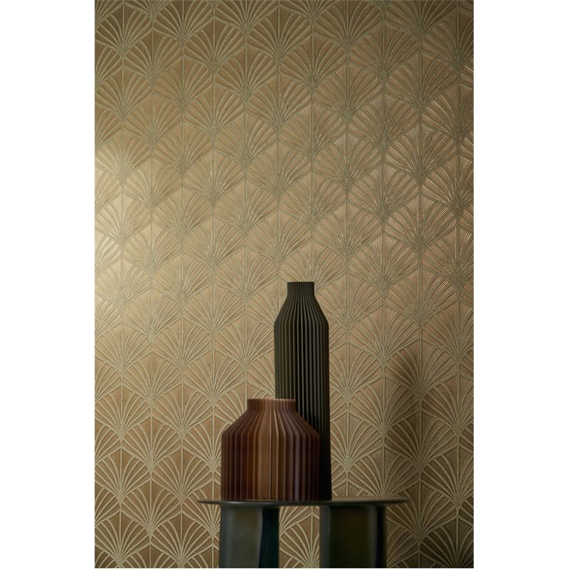 Papier peint exclusif feuilles de palmier vert et doré effet métallisé d´Casamance, collection Magnitude - Textures. Qualité vinyle lavable, dimensions : 1 x 10 m.