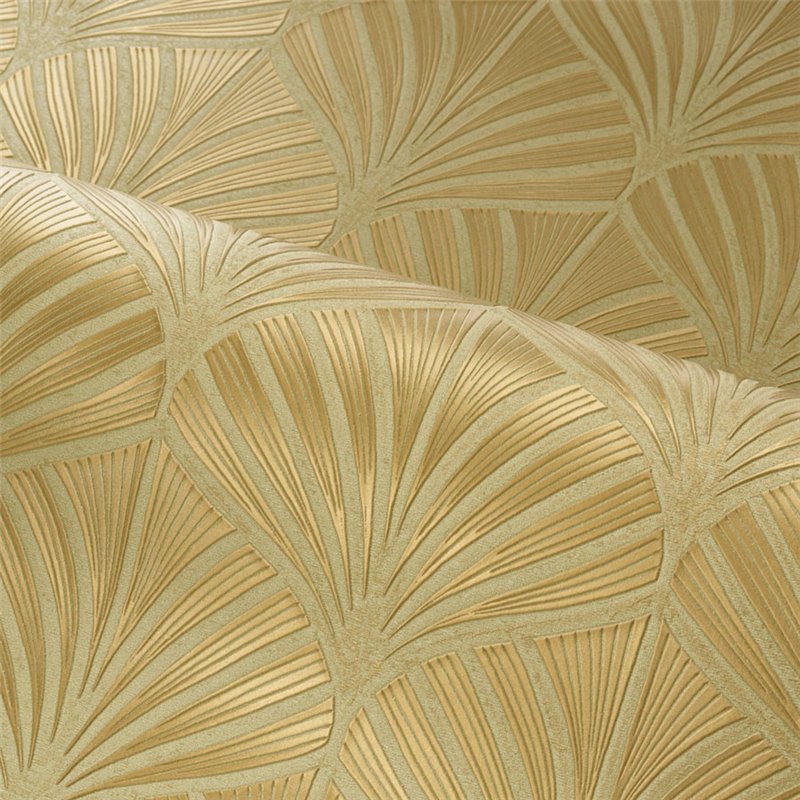 Papier peint exclusif feuilles de palmier vert et doré effet métallisé