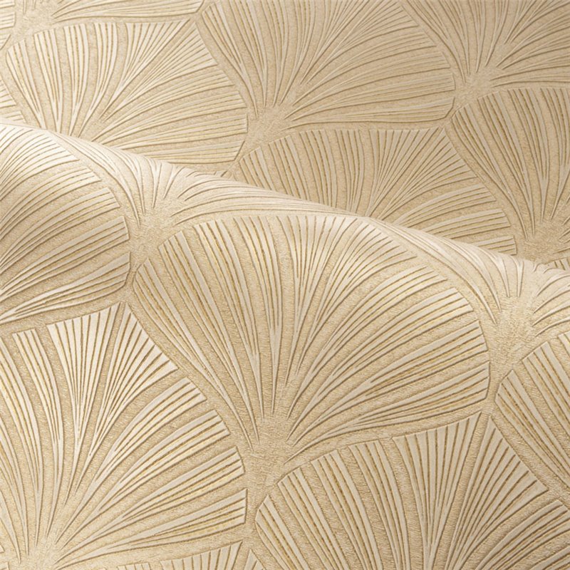 Papel pintado exclusivo hojas de palma verde y dorado con efecto metalizado