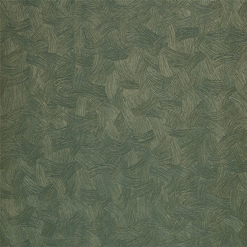 Papel pintado exclusivo entrelazado abstracto verde claro y dorado de Casamance, colección Magnitude - Textures. Calidad vinílico lavable, medidas: 1 x 10 m.