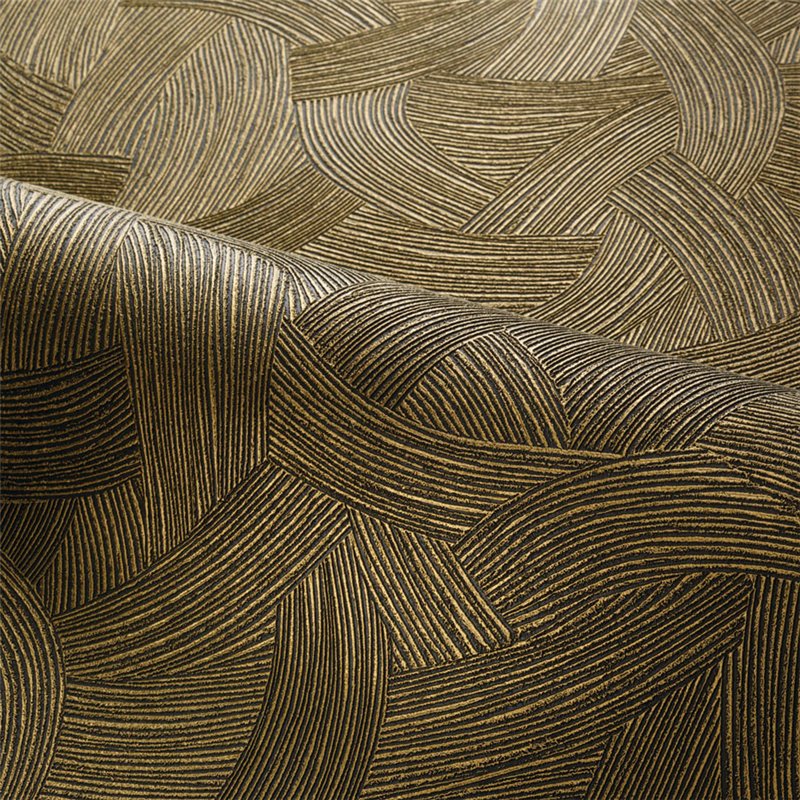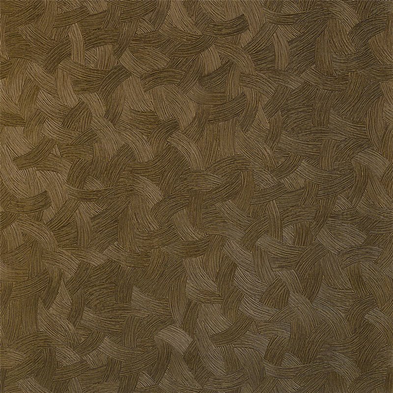 Papel pintado contemporáneo entrelazado abstracto marrón y dorado de Casamance, colección Magnitude - Textures. Calidad vinílico lavable, medidas: 1 x 10 m.